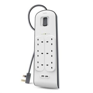مشترك كهرباء بطول مترين بـ 6 مقابس ومنفذين USB من Belkin – أبيض