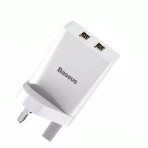 بلاك حائط بقوة 24W بمنفذين USB-A من Baseus – أبيض