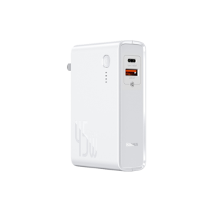 بلاك حائط وبطارية 2 في 1 بسعة 10,000 وقدرة 45W بمنفذ USB ومنفذ USB-C من Baseus – أبيض