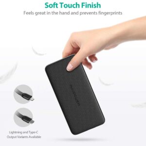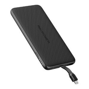 راف باور بطارية متنقلة بسعة 5,000 مع سلك Type-C مدمج ومنفذ USB – أسود