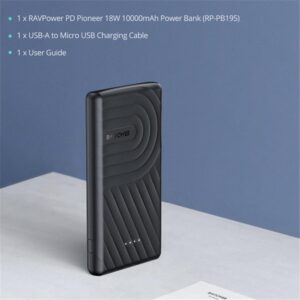 راف باور بطارية متنقلة بسعة 10,000 بمنفذ USB بتقنية IQ للشحن السريع ومنفذ PD – أسود