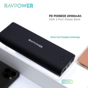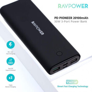 راف باور بطارية متنقلة بسعة 20,100 بمنفذين USB بتقنية IQ و iSmart ومنفذ ثالث PD – أسود
