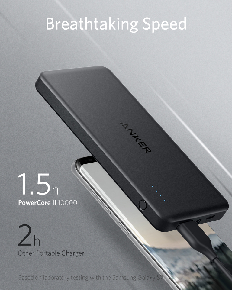 لا يوفر PowerCore II 10000 أسرع شحن ممكن تقريبًا لأي هاتف ذكي أو جهاز لوحي فحسب ، بل يمكن إعادة شحنه بالكامل في 4 ساعات فقط. وهذا يعني وقتًا أقل في الشحن ، ووقتًا أطول للعيش.