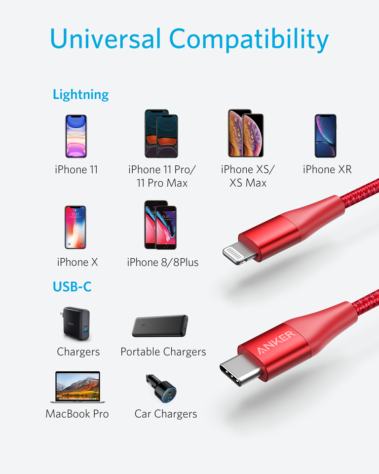 الرئيسيةالهواتف والموبايلاتاسلاك شحن انكر باور لاين+ II بطول مترين من USB TYBE-C إلى Lightning – أحمر قماشي