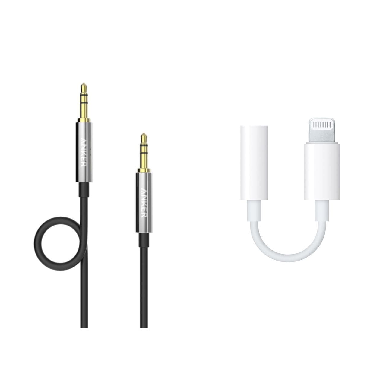 ▐عرض التوفير▌ – كيبل انكر AUX للنقل الصوتي بطول متر ونصف أسود مطاطي مع محول (Adapter) من Lightning إلى AUX من Apple
